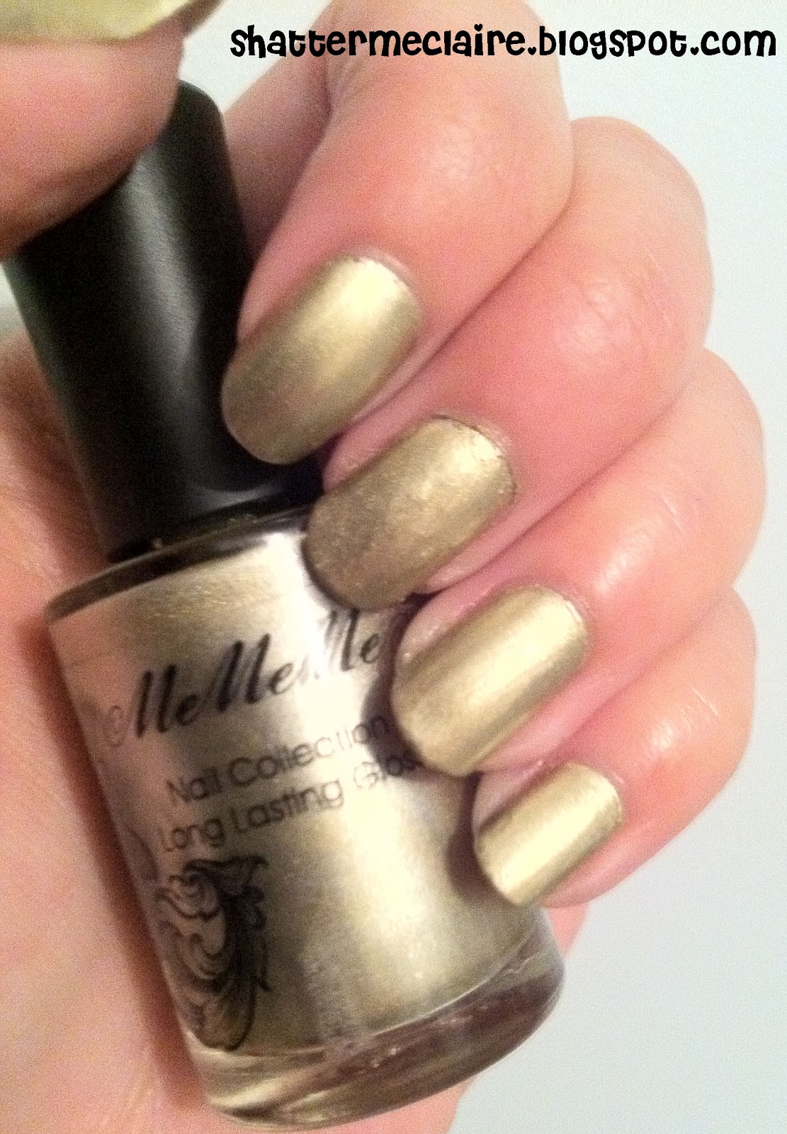 I won this recently in a competition from the Me Me Me Cosmetics Australia Facebook page and I'm super glad it came my way as it's awesome and I'm not sure it would have come my way otherwise.Elegant is from their Metallic collection it is a beautiful golden foil. I originally though it was going to be close to piCture pOlish Goldfinger hence the post yesterday but I'll do a comparison at the end so you can see how it's not anywhere alike. While it's definitely gold it's more of a cool gold tone than the vibrant gold in Goldfinger.